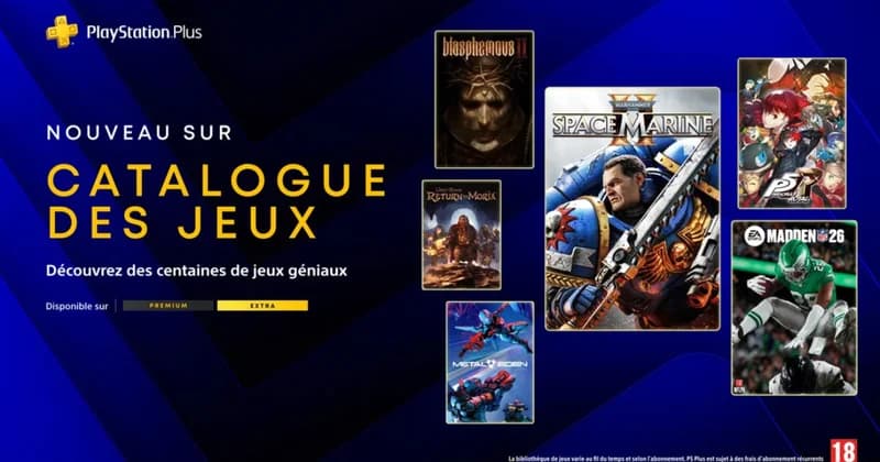 Le catalogue PS Plus de mars 2026 est disponible depuis le 17 mars : Warhammer 40,000 Space Marine 2, Persona 5 Royal et plusieurs autres titres de qualité. Voici tout ce qu'il faut savoir et comment y accéder depuis l'Afrique de l'Ouest.